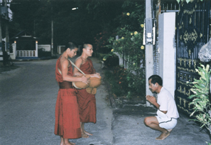 打开冰箱的冷冻柜,看一看土司这种薄片面包,只剩下两片。想到明天又是很忙很忙的一天,不一定有时间买土司,于是走向麦片面包店,准备购买十片装的最薄土司。 在巷子口,看到一群人,很特殊的装扮,有吸血鬼、吊死鬼、老巫婆…。他们之中,有的拿扫把,也有拿锁炼,还有拿玩具刀和玩具蛇,原来是西洋人的鬼节,现代有些人代称为万圣节,所以他们打扮成鬼的模样,上街玩耍。 走到五百多巷的十字路口,路的东边是美国侨民学校,西边是日本侨民学校,都是向台湾银行租用土地盖学校,校旁红砖人行步道大约有十公尺宽。 美国侨校旁的人行道上,除了一些扮鬼的人们在表演,也有看热闹的人。表演者走过来又走过去,以移动游行吸引人们的注意,若是看者心惊尖叫,扮鬼的人就很高兴,彼此就越发卖力表演。 榕树下,有几位在表演哑剧,头上戴了演戏用的比丘头套,随便穿了些衣服,他们的胸前挂了一块名牌,「释昭秽比丘」代表男者,「释招秽比丘尼」代表女者,他们旁边的标语写着「大男人主义的产物比丘尼戒」、「废除比丘尼戒」…。 路上的行人,没有几个人会留意他们的戏,娑婆世界疯子一大票,今天又是外国人的鬼节,这种戏码太烂了,行人都懒得看。 无意之中,发现就有那么一个人,东边看看,西边瞧瞧,然后笑一笑。发现有人在看他时,忍耐了一会儿,走过来了说:「我不是演戏的。东边的表演者和西边的表演者,他们在演一幕戏。」。 往中山北路六段的西边看,也有一些人在表演,他们的胸前也挂了名牌,「释灭秽比丘」代表男者,「释摈秽比丘尼」代表女者。有一位释灭秽比丘看着脚前两公尺远,低头行走。对面一位释摈秽比丘尼立刻低头站在路旁,向比丘行礼。 戏演完了,释灭秽比丘坐在椅子上。只见释摈秽比丘尼远远的跪下,然后跪行到释灭秽比丘前约二公尺远,低头请教佛法。 这时候,路东边的表演者就学狗叫,并且摇动那些令人触目心惊之「废除不平等的比丘尼戒」旗帜。 此时,听到这位仁兄说:「太棒了!释招秽尼姑没有留在一贯道中。佛经记载,魔王会派魔子魔类混入比丘比丘尼中,恶比丘恶比丘尼会毁坏佛法。」。 听到这位仁兄那种坦率言语,于是问他: 「你是一贯道的?」。 他回答说是,然后又说: 「爽!释招秽尼姑是害人害自己。」。 听他说话颇有一些见地,不是那种冒牌货,就跟他聊聊。 这位仁兄说:「你是东墙人或西墙人?」。 他用鬼节表演者的戏码问禅语,只好正经的说: